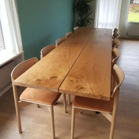 Naturolieret bordplade af egetræ med naturlige kanter.