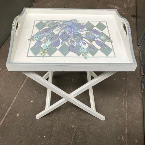 Bakkebord/Sidebord/Lampebord i Mahogni,med gennembrudt gallerikant.