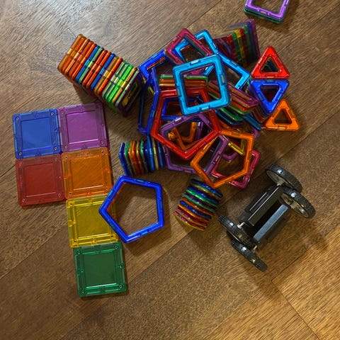 Fedt magnet legetøj. Alle ting er med i kassen. Kassen er lidt slidt men ellers fejler magneterne ingenting.