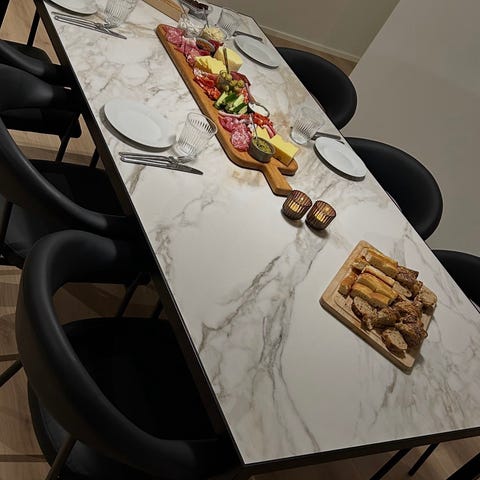 Rigtig flot spisebord i meget pæn stand. Bordet har klinke bordplade - super praktisk hvor alt kan tørres af og som tåler varme. Bordet måler 320x110x73. Bordet er fra KK Design.