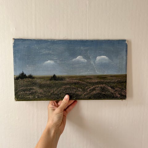 Oliemaleri, b: 49 h: 40, Dejligt billede af et gammelt husmandssted ,i god stand