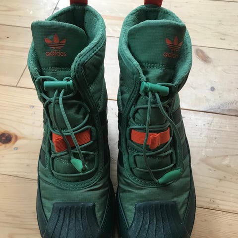Adidas børn sko i størrelse 40, farven sort. Skoene er designet til drenge og har en refleksdetalje.