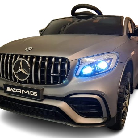 Denne elektriske børnebil i form af en Mercedes AMG GLC 63 i hvid er en stilfuld og realistisk 12-volts batteridrevet bil til børn fra ca. 3 år, der giver små bilentusiaster en autentisk køreoplevelse i trygge rammer. Bilen er designet med detaljer inspireret af den rigtige Mercedes-model og er udstyret med vigtige funktioner som fjernbetjening, så forældre kan styre bilen efter behov, samt lygter, lyd og MP3-/USB-tilslutning, så køreturen bliver både sjov og underholdende. Med fire motorer og et rubberdækdesign kører bilen stabilt med hastigheder fra ca. 2,5–5 km/t, og den har sikkerhedsudstyr som lædersæde med fempunktssele. Det er et populært valg som gave til fødselsdag eller jul – både fordi den ser rigtig flot ud og fordi den tilbyder mange funktioner, som både børn og forældre vil sætte pris på.