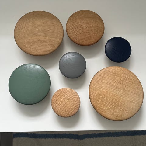 Sæt bestående af 8 sorte træknager lavet af træ. Hver knage har en skrue til montering og måler cirka 10 cm i længden. Kan bruges til ophængning af tøj gerne med en knage under, hundesnoren eller andet