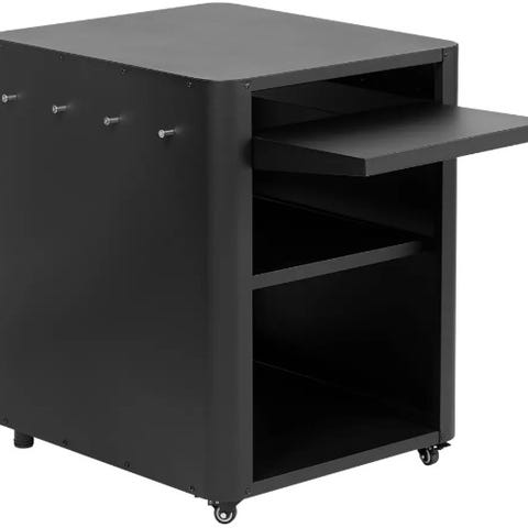 Grill-sidebord med skab og rustfri bordplade.