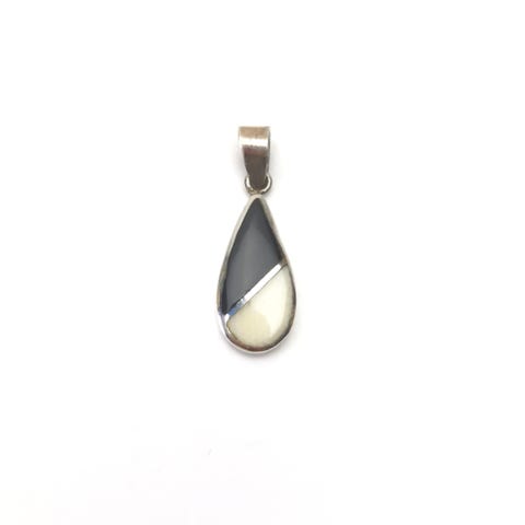 Elegant sterling sølv vedhæng ovalt prydet med onyx sten og ben måske. På bagsiden er der stemplet 925 og et mester stempel. Vedhænget måler 13 x 10 mm og fremstår med almindelig brugs spor.