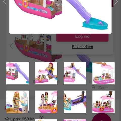 Stort vintage Barbie cruiseskib i god stand, 35 cm højt og 50 cm langt