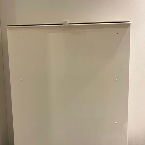 Vægophængt puslebord med plads til cremer, bleer osv.