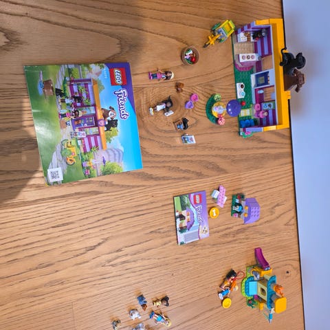 LEGO Friends 41620 Bygge sæt med flere figurer og detaljerede bygninger. Sættet indeholder forskellige elementer til leg og konstruktion, designet til børn fra 7 år og op. Farverne og materialerne er typiske for LEGO Friends serien.