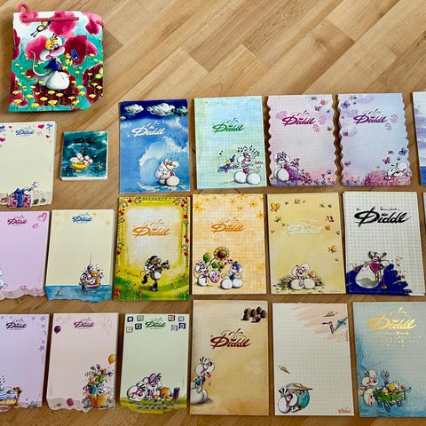 - Mange Diddl brevpapirsblokke (A4 og mindre)