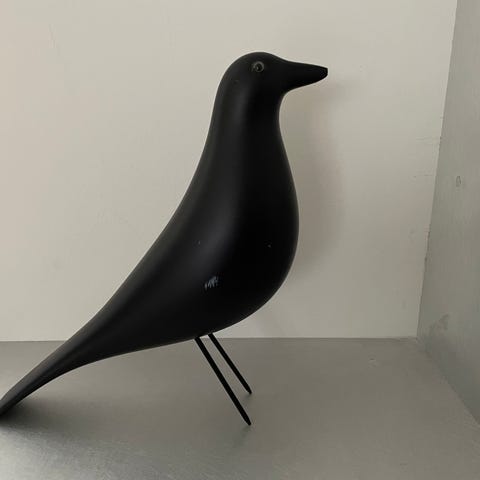 Vitra Eames House Bird dekorationsfigur i sort. Fremstillet af træ med metalben. Designet som en fugl, velegnet til indretning og dekoration.