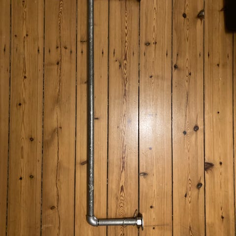 Smart sort bøjlestang i stål/vandrør. Organisere dit tøj/garderobe på en smart måde. 32 cm lang fra væg og ud. Fejler ikke noget - meget velholdte. Har kun været brugt i et showroom. Har 19 stk. Sælges enkeltvis. Prisen er for 1 stk.
