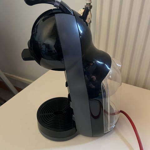 Nescafe Dolce Gusto automatisk kaffemaskine i sort farve. Maskinen er designet til at lave forskellige kaffedrikke med kapsler.