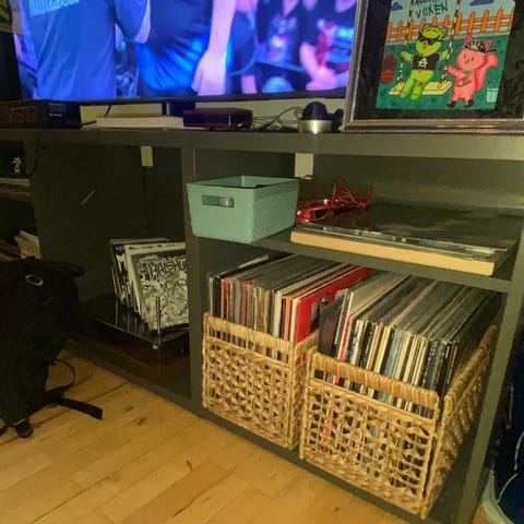 TV-skænk fra Ikea i serien Bestå. Der er de tre standard-låger i hvid på, som nemt kan skiftes ud. Derudover har møblet beslag bagpå til at blive hængt op og endnu bedre: 8 hjul fra en tidligere bestå-serie, som ikke laves længere. Man kan nemt køre rundt med møblet, selvom det er stort. Bud modtages og hurtig afhentning prioriteres.