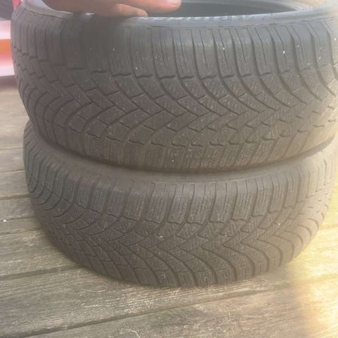 Brugbare vinterdæk, 215/55-16. Fint med mønster, kan sagtens køre 1 sæson eller 2. Dæk årgang 27/16.
