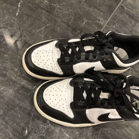 Nike børnesko til unisex i størrelse 38. Skoene er sorte med hvide detaljer.