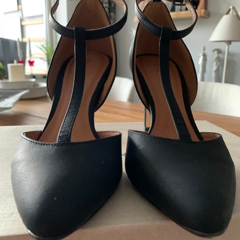 Bianco højhælet sko i størrelse 36. Skoene er sorte og lavet af læder.