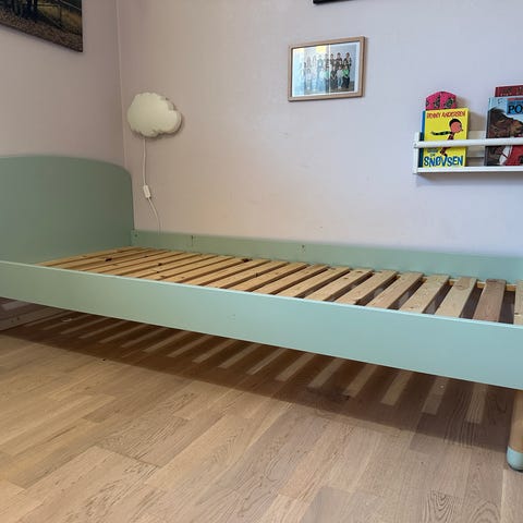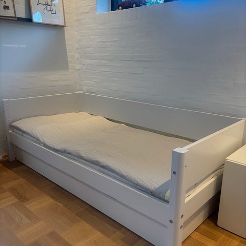 Flexa enkeltseng med træramme og lamelbunde. Sengen er egnet til børn og har et enkelt og funktionelt design. Materialet er træ, og den er robust til almindelig brug.