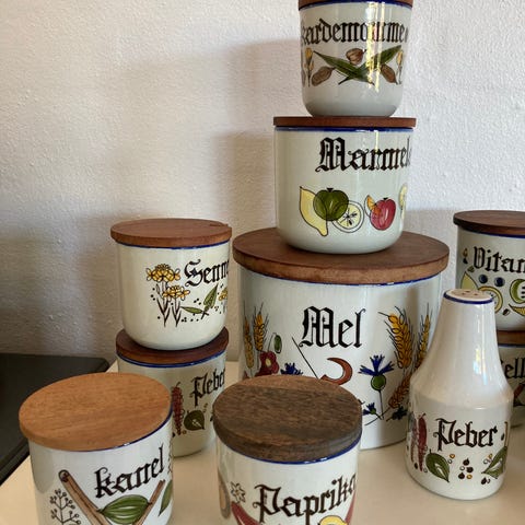 Pernille-serien. Stort udvalg i de klassiske Knabstrup krydderi-krukker