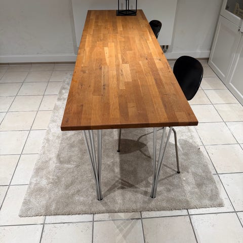 Snedkerlavet egetræbord, egnet til arbejdsbord eller spisebord. Kun til afhentning.