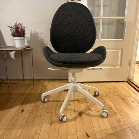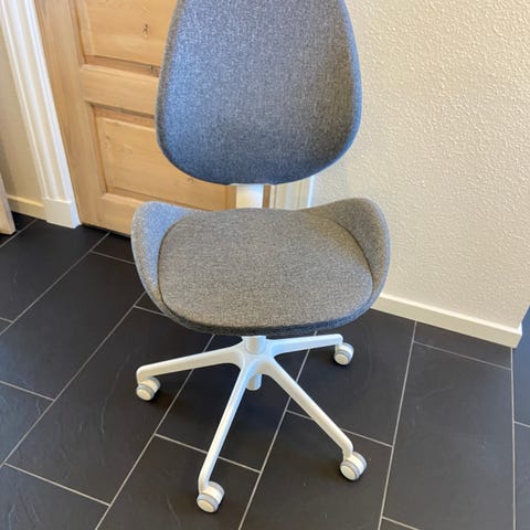 Vi sælger denne IKEA Hattefjäll kontorstol i lys grå, da vi har købt en anden stol. Ganske behagelig at sidde på, da man kan justere siddehøjde, ryglæn, armlænene kan justeres frem/tilbage og i højden.