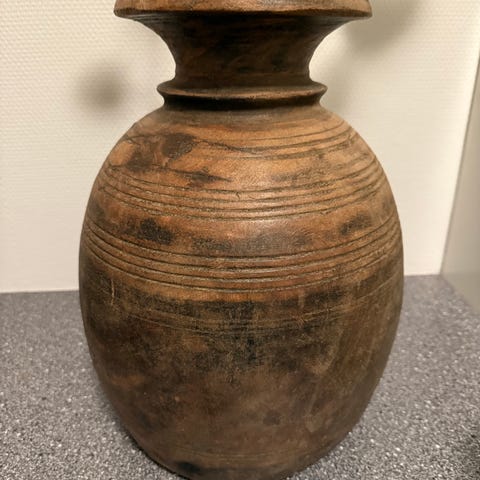 Smuk og rustik krukke med patina. Perfekt til stuen. I brune og lerfarvede nuancer. Måler H: 44 cm og diameter ca. Ø47 cm.