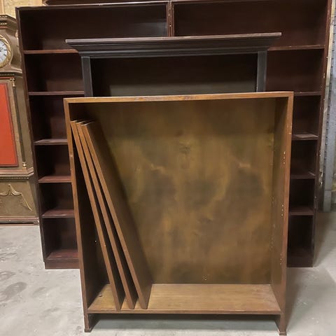 Reol kirsebærfiner, 2 glaslåger med glashylder, 4 alm. låger med hylder, 4 stk. skuffer