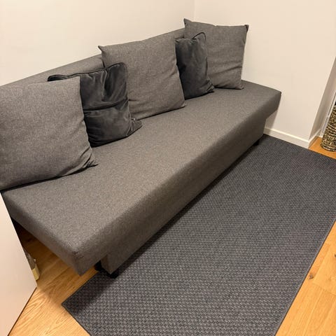 Rigtig fin sovesofa. Der mangler en ryg hynde.