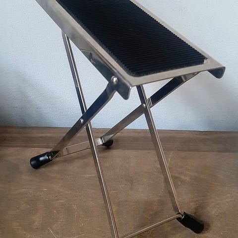 Jeg sælger denne Ergoplay Model Michael Tröster. Det er en rigt justerbar guitarstøtte til akustiske guitarer, der hviler på venstre lår, og gør det komfortabelt at sidde og spille guitar.