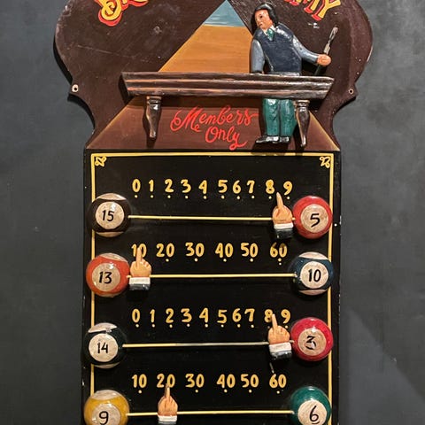 Billiardbord Kvartmass. 7 køer, lampe og tavle. Afhentes på Amager.