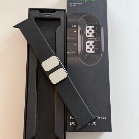 Track endnu flere parametre med AURA Strap 2, som sættes på dit Apple Watchs ur rem. Og via Aura App får du tilgang til udvidet måle punkter.