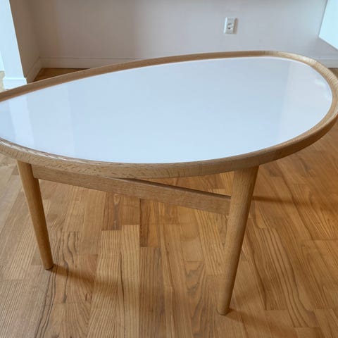 Cocktail bord i eg og hvid laminat designet af Finn Juhl i 1951. Bordet blev oprindeligt tegnet til det amerikanske firma Baker Furniture.