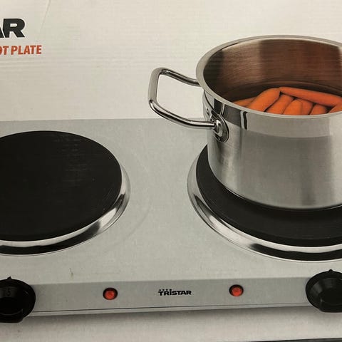 2 kogeplader tilsluttes EL og så kan der laves aftensmad på camping, i udekøkkenet eller på farten. Brugt få gange og virker super.