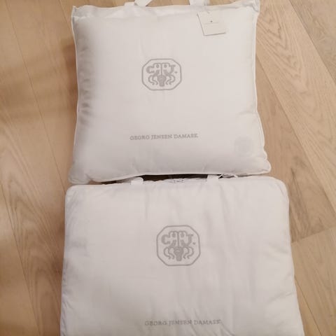 Dyne- og pudesæt, Georg Jensen Damansk, 1 dunpude (60 x 63 cm) og 1 helårsdyne (140 x 200 cm) fra Georg Jensen Damask. Aldrig brugt.