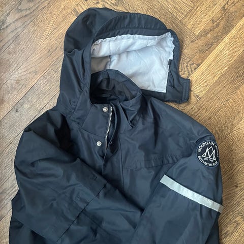 Ingen slid. Været brugt i stalden et par gange, ellers kun brugt til at lufte hund med. Har aldrig været vasket i maskine, så imprægnering er intakt.