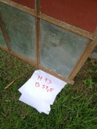 Staldvindue, jern, b: 60 h: 93, med lille bue og 9 vinduer, har 2 stk.
