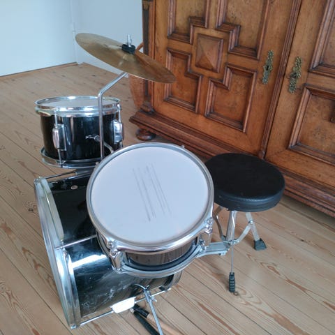 Trommesæt til børn sælges. Trommestikker mangler men eller i fin stand inkl stol.