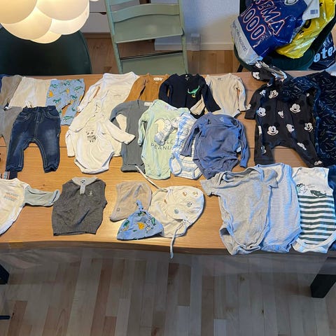 Gør et kup og få en masse tøj i denne tøjpakke str. 56. I alt 27 dele tøj i primært drengede farver. Flere forskellige mærker herunder H&M, Name It m.fl.
