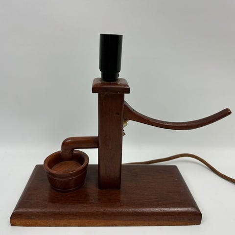 Anden bordlampe, Vandpumpe, 1 strk Retro Bordlampe i Teaktræ vandpumpe virker som den skal