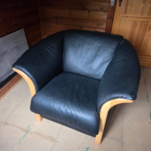 Manhattan stressless 3 personers sofa i sort læder rigtig pæn stand træsort bøg natur ubehandlet.