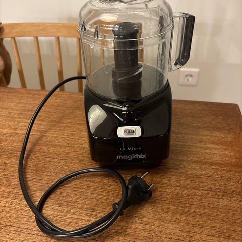 Magimix Le Micro Minihakker i sort. Effektiv minihakker til 0,83 liter - og med 290 Watt motor. Der medfølger både universalkniv til at hakke og blenderblad til at piske og blende.
