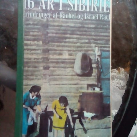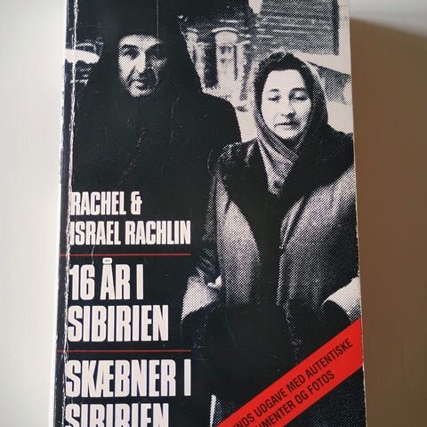 Rachel & Israel Rachlin 16 år i Sibirien Bog. Denne bog beskriver oplevelser og skæbner i Sibirien over en periode på 16 år. Bogens omslag er blåt med billeder og tekst.