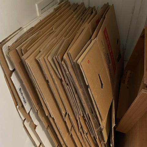 flyttekasser lavet af pap. Kasserne er designet til opbevaring og flytning, og de har håndtag til nem transport. Forskellige størrelser.
