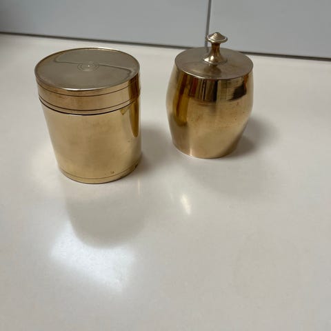 Messing krukke med håndtag. Jeg har 2 stk i forskellig str. 150 kr for begge