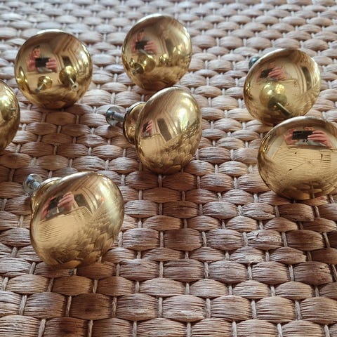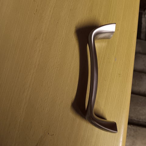 12 stk håndtag til skabe eller skuffer i krom-look. I god stand. Bredde: 8,5 cm. Sælges samlet