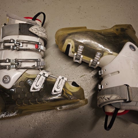 Brugte skistøvler. De er blevet for små. Passer en sko str. 41. Kan hentes i Dragør eller på hverdag i København Ø eller Ballerup