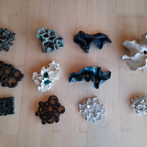 Keramik vægdekorationer med børn i rød og beige