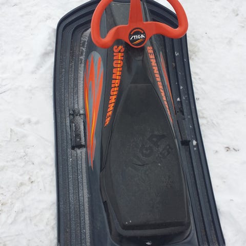 Stiga børneslæde i pink farve med stabilt sæde. Designet til børn med fokus på stabilitet under kørsel på sne.