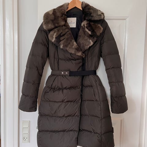 Smuk og meget feminin overgangsjakke fra Moncler. Mange feminine detaljer, som er lidt usædvanligt for Moncler.
