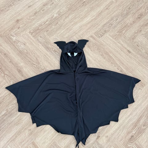 Flagermus kappe og maske. 95 cm fra nakke til spids på kappen.